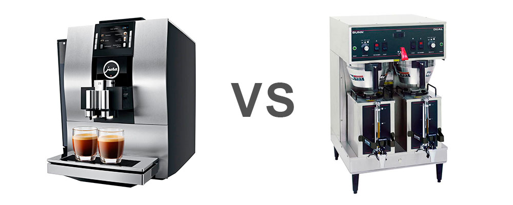 >Por la tendencia del mercado, la mayoría de los negocios deciden utilizar una máquina de Espresso, pues permite hacer Espresso, cappuccino, latte y una especie de “café americano” que es básicamente un Espresso diluido en agua, mientras que las cafeteras percoladoras, otro gran clásico, lo único que nos permiten hacer es café americano.